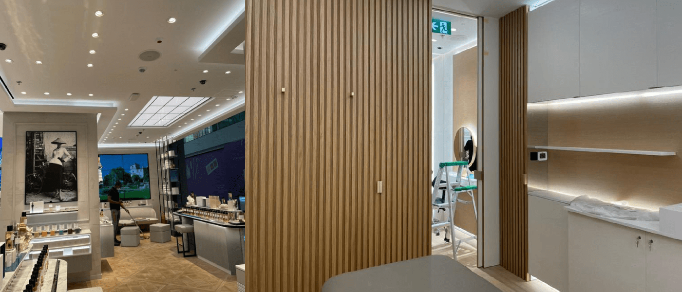 Our company successfully executed a comprehensive scope of work to deliver a completely new look and design for this project. We began by modernizing the electrical and technical infrastructure, which included the installation of various switches and sockets with metallic face plates, as well as the setup of new GI conduits for power, voice, data, CCTV, speakers, and specialized equipment like signage and shutters.